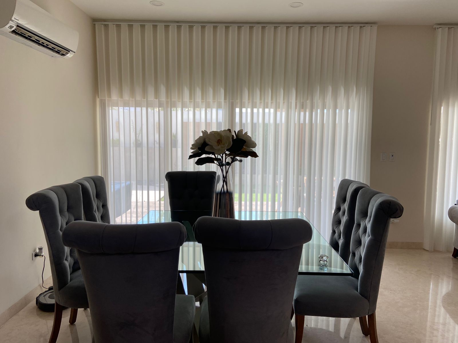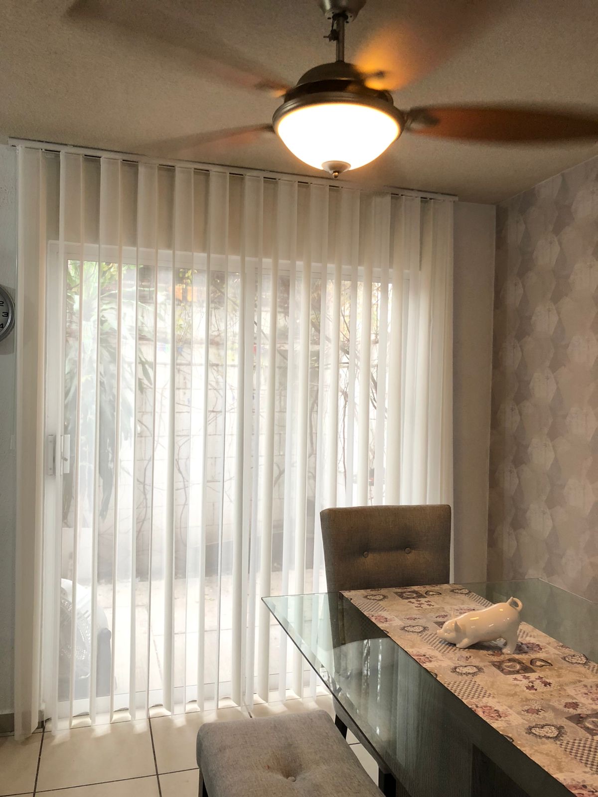 Persiana fina y elegante de desplazamiento lateral, con disponibilidad de posicionarse en cualquier punto de su carrera y con opción de perfilar la tela en cualquier punto de la persiana para permitir mayor o menor entrada de luz.