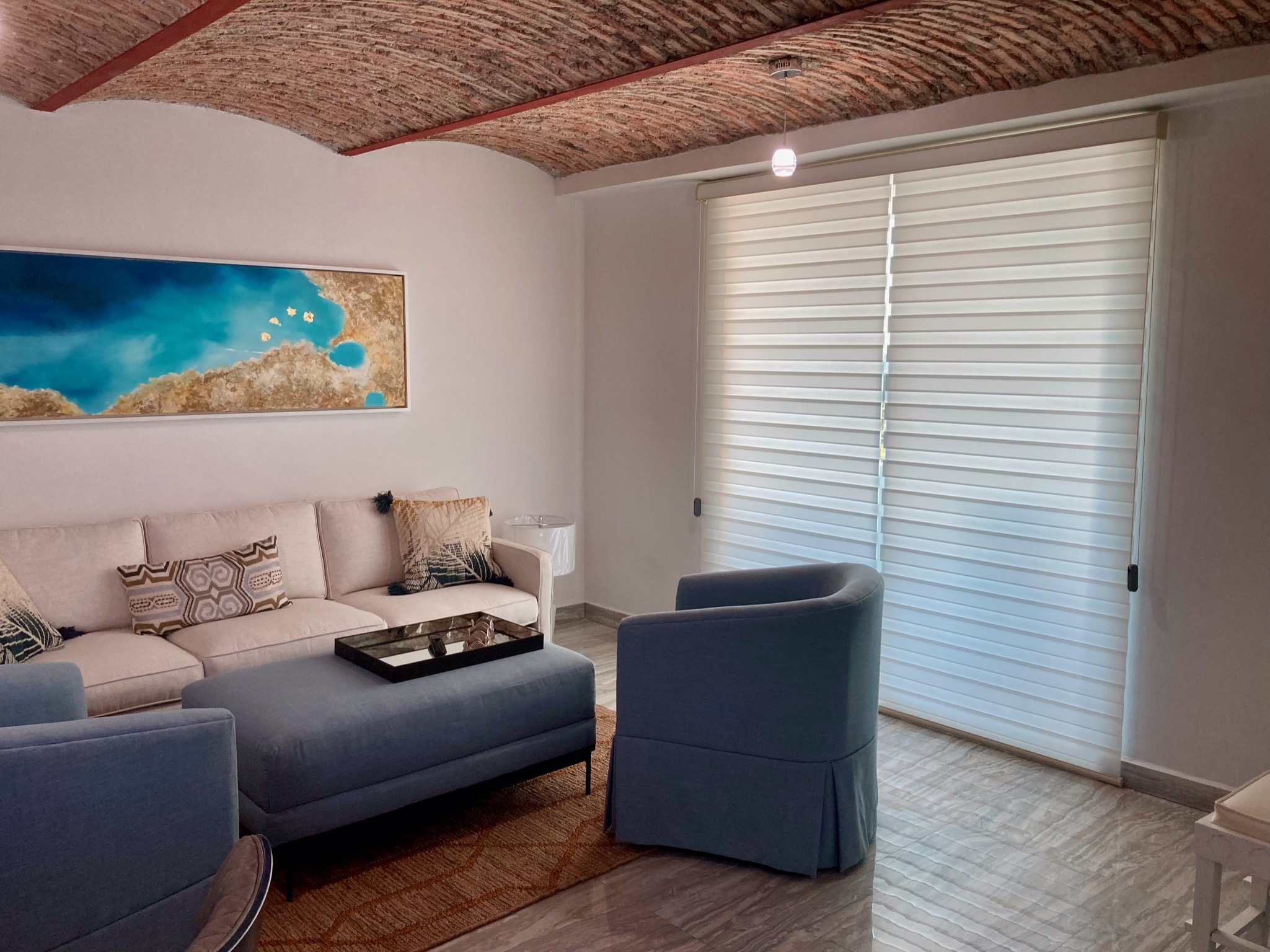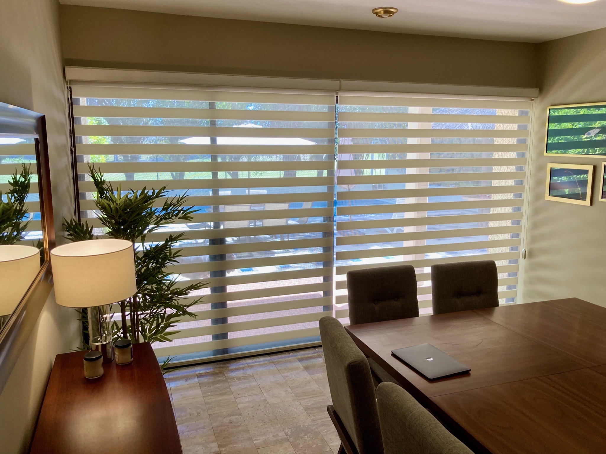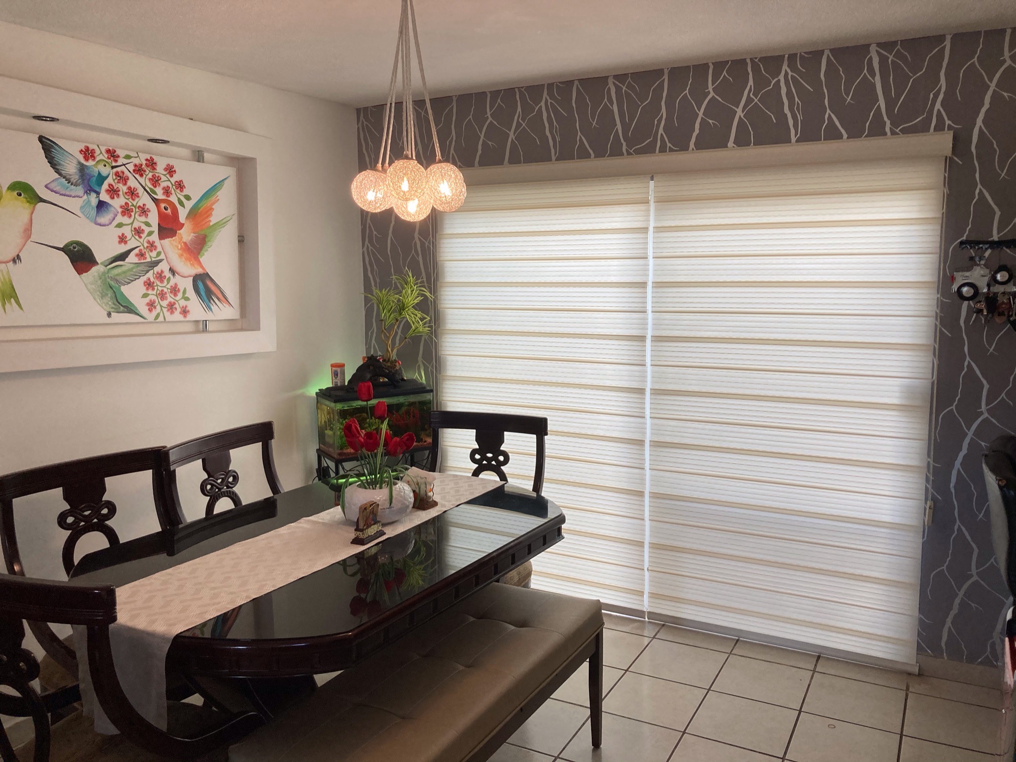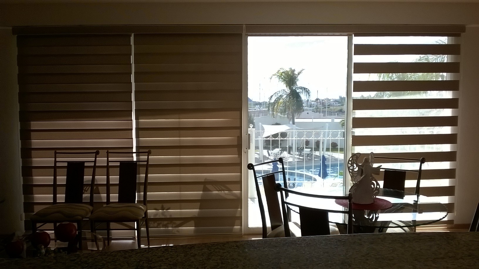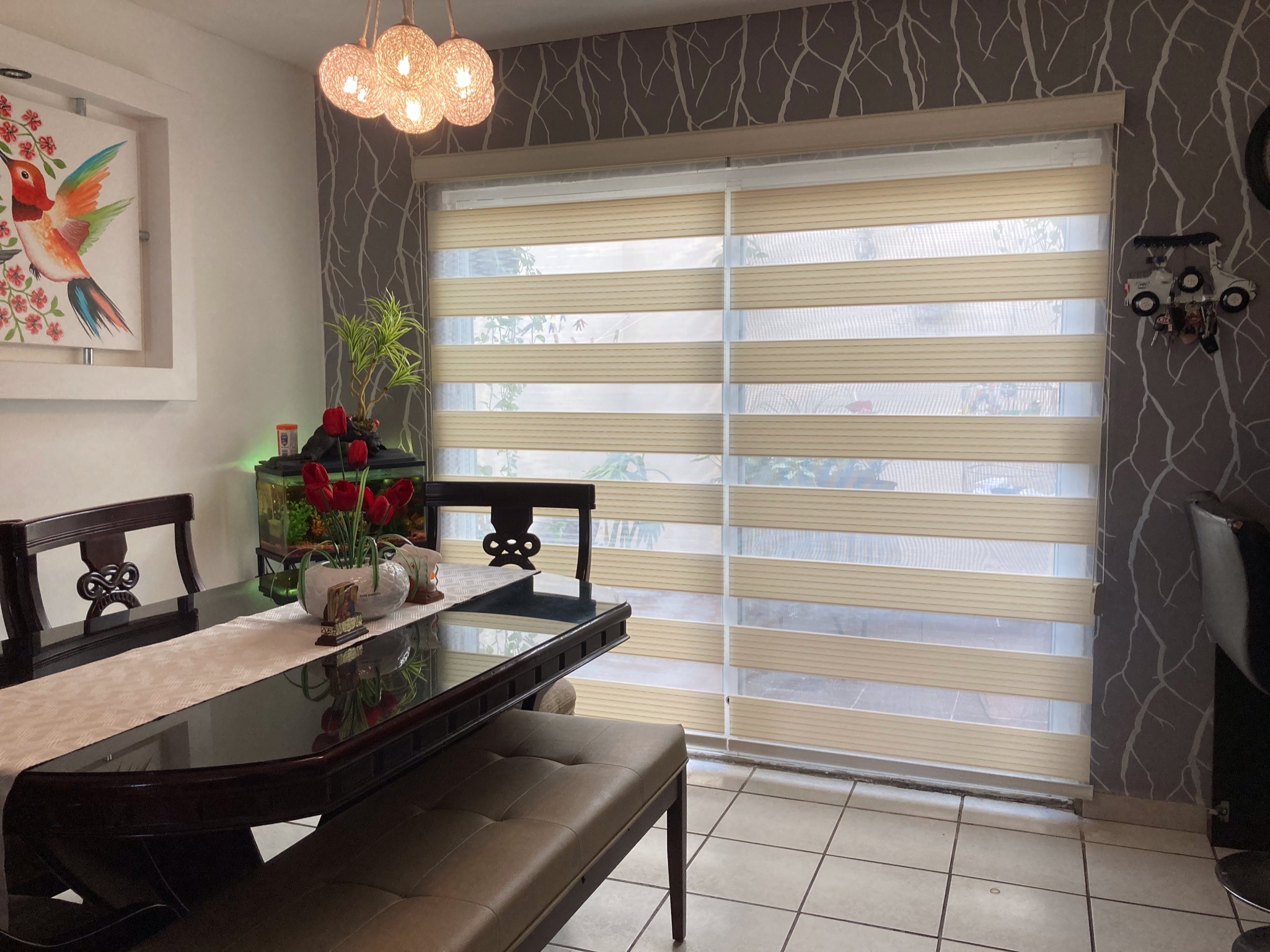 La persiana de este estilo permite el control de la luz, ya que es una persiana de enrollamiento vertical fabricada con doble tejido, uno transparente y otro translúcido. El acomodo de estos dos tejidos permite mayor entrada de luz y mayor privacidad.